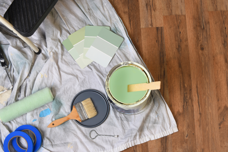 A clean, empty canvas is easier to work with. Start by moving furniture to the center of the room and covering it with plastic sheeting. Lay down canvas drop cloths to protect your floors—canvas stays in place better than plastic, which can be slippery.