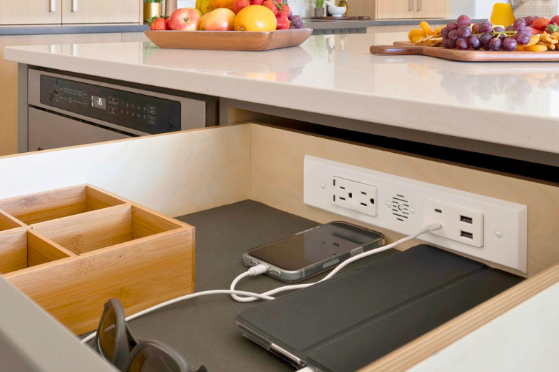 Transform your kitchen junk drawer or upgrade your bedside table with a built-in charging unit. Docking Drawer Canada offers in-drawer power outlets that are easy to install, safe to use, and compliant with the Canadian Electrical Code – starting at around $210. Remember to research thoroughly and consult an electrician if needed.